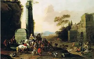 - ^ a b Travellers resting by a fountain at Jean Moust Old Master Paintings