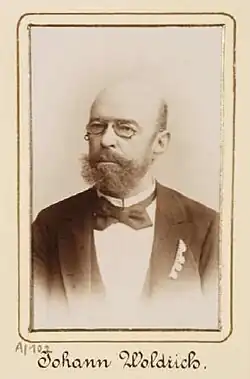 Jan Nepomuk Woldřich (German: Johann Worldrich; 15 July 1834 – 3 February 1906) was a Czech-Austrian geologist, paleontologist and amateur archaeologist. He served as a professor at the Czech Charles-Ferdinand University in Prague.
