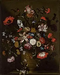 The signed works have been the basis for attributing additional works to the artist, which had previously been attributed to other Flemish flower painters such as Jan Brueghel the Elder, Daniel Seghers, Jan Philip van Thielen, Jan Baptist Bosschaert, Jan van Kessel the Elder, Gaspar Peeter Verbruggen the Younger and Dutch painters such as Rachel Ruysch, Jan van Huijsum and Simon Pietersz Verelst.[9]