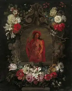 - ^ Jan Pieter Brueghel and follower of Jan Boeckhorst, Cartouche with a personification of America, surrounded by flowers, ca. 1650-1655 at the Netherlands Institute for Art History
