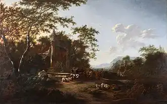 Jan Snellinck (III) collaborated on a number of landscapes with Adam Colonia who provided the staffage in his landscapes.[8]