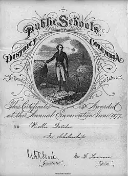 Datcher attended both public and private schools run by members of the Black community in Washington, D.C. In 1877, she earned a certificate for her academic achievement from the Public Schools of the District of Columbia.[2] In 1886, Jane enrolled at Cornell University at the age of 19 with her cousin, Charles Chauveau Cook. It was the only school that would educate them both.[4] She obtained her Bachelor of Science degree from Cornell in 1890 for her research on the species Hepatica triloba and Hepatica acutiloba.[1] She was among the first three African-Americans to graduate from Cornell, along with her cousin Charles and George Washington Fields. Because of her excellent scholarship during her years at Cornell, Datcher had the honor of sitting in the center of the front row in the Cornell Class of 1890 graduation photo.[2]