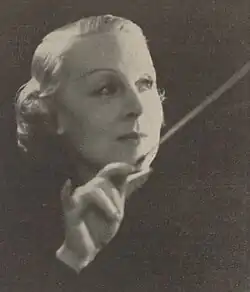1. ^ Evrard referred to herself as the first.[1] Although other women had led orchestras in France prior to 1930, they were usually composers conducting their own work. Evrard appears to be the first French woman to conduct and manage her own ensemble in a professional capacity.