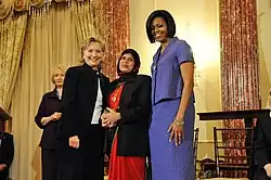 In 2010, she was named an International Woman of Courage by the US Department of State, receiving her award from First Lady Michelle Obama and Secretary of State Hillary Clinton.[3] She was also a speaker at the launch of the UNDP 2010 Asia-Pacific Human Development Report on Gender, and stated that Sri Lanka must change its attitude about women's rights in order to fix issues such as women’s political participation, access to legal rights and women’s participation in the workforce.[4]