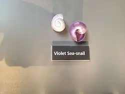 Janthina janthina is a species of holoplanktonic sea snail, a marine gastropod mollusk in the family Epitoniidae. Its common names include violet sea-snail, common violet snail, large violet snail and purple storm snail.[2]