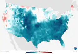 ![]() Average mean temperature anomalies across the United States during the month of January 2025 | |