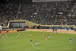 ![]() Japan and South Korea contesting the 2010 East Asian Football Championship | |