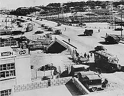 The direct predecessors to National Route 58 in Okinawa are Military Road 1, which was established during the Battle of Okinawa and maintained by United States Civil Administration of the Ryukyu Islands, and Government Highway 1, which was maintained by the Government of the Ryukyu Islands until the islands were returned to Japan. The highway functioned as the island's main road during World War II and the subsequent US administration of the region.[9] Military Road 1 was captured during the early stages of the Battle of Okinawa and it was quickly redeveloped by Japanese prisoners of war to facilitate the US effort to capture the island—and occupy it. The highway was mainly developed as a high-speed logistics route for the US military that could carry vehicles weighing up to 35 tons. It was re-designated as Government Highway 1 during the civil administration of the island, but the US military's vehicles still took priority over the local Okinawan driving community, who were not allowed to pass US military convoys and vehicles.[10][7] After the return of the Ryukyu Islands from the United States to Japan on 15 May 1972, the aforementioned highways were all re-designated as a part of National Route 58. It remains the only Japanese national highway to be given a two-digit number following the reclassification of the Primary and Secondary National Highways as the General National Highways in 1965.[9] Until 30 July 1978, traffic on National Route 58 in Okinawa Prefecture drove on the right rather than the left. After the 730 switch, Okinawa joined the rest of Japan in driving on the left in accordance to the Vienna Convention on Road Traffic.[11]