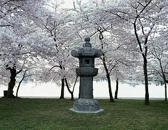 The Japanese Lantern is a stone lantern in West Potomac Park, Washington, D.C. It is located next to the Tidal Basin, among the cherry trees first planted in 1912. It is lighted during the annual National Cherry Blossom Festival.