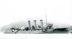 Niitaka was commissioned just in time for the Russo-Japanese War and saw combat at the Battle of Chemulpo Bay on 2 February 1904 against the Russian cruiser Varyag.[2] She subsequently participated in the shore bombardment of Russian positions during the Battle of Port Arthur on 9 March 1904. From April, Niitaka was assigned to patrols of the Korea Strait and the Sea of Japan, but was not in position to participate in Battle off Ulsan on 14 August 1904. She did, however, assist in the rescue of Russian sailors off the sinking cruiser Rurik after the battle. At the Battle of the Yellow Sea, Niitaka was part of the 4th Detachment of Japanese 2nd Fleet against the Russian cruiser Askold.She was subsequently one of the ships stationed at Makung in the Pescadores Islands to watch for the arrival of the Russian Baltic Fleet.[3]