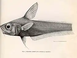 The Japanese pugnose grenadier (Nezumia condylura) is a species of rattail fish. It is found at depths of up to 720 m (2362 ft) in the waters around southern Japan, northern Taiwan and in the East China Sea.[1][2]