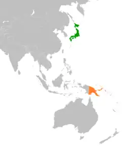 When the Japanese arrived in Rabaul in 1942, Japanese residents who were not captured welcomed the Japanese soldiers, who released the mixed-race Japanese from internment. Most of them initially held suspicions of the presence of Japanese military personnel, which was partly fuelled by the absence of their Japanese fathers who were relocated to concentration camps in Australia. During the Japanese occupation from 1942 to 1945, mixed-race Japanese children were conscripted to clerical or light menial work within the military administration, and some received a Japanese education. At least one mixed-race Japanese, Pius Kikuchi, described the treatment of the Japanese military administration to the mixed-race children as gentle but discipline-oriented in nature. In other areas of Papua New Guinea which remained under Australian control, families of Japanese residents generally received harsh treatment from the Australian military.[2] "Comfort women" formed another major component of the local Japanese community during the Japanese occupation years, which consisted of up to 3,000 Japanese and Korean women who were stationed in Rabaul's Chinatown which was frequented by Japanese military personnel. Apart from local Papuan women also serving as comfort women, one Australian Captain, David Hutchinson-Smith, also mentioned of some mixed-race, young Japanese-Papuan girls who were also conscripted as comfort women.[6]
