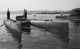 At the end of 1944, the Imperial Japanese Navy decided it needed large numbers of high-speed coastal submarines to defend the Japanese Home Islands[1] against an anticipated Allied invasion (named Operation Downfall by the Allies). To meet this requirement, the Ha-201-class submarines were designed as small, fast submarines[1] incorporating many of the same advanced ideas implemented in the German Type XXI and Type XXIII submarines. They were capable of submerged speeds of almost 14 knots (26 km/h; 16 mph).[1]
