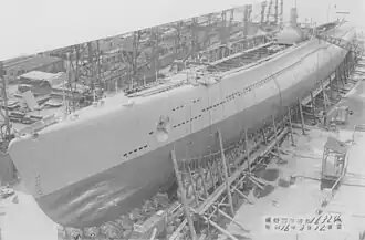 The Type B submarines were derived from the earlier KD6 sub-class of the Kaidai class and were equipped with an aircraft to enhance their scouting ability. They displaced 2,631 tonnes (2,589 long tons) surfaced and 3,713 tonnes (3,654 long tons) submerged. The submarines were 108.7 meters (356 ft 8 in) long, had a beam of 9.3 meters (30 ft 6 in) and a draft of 5.1 meters (16 ft 9 in). They had a diving depth of 100 meters (330 ft).[1]