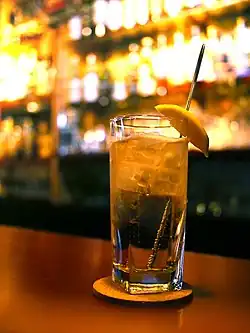 Japanese whisky is consumed either like Scotch whisky or like Japanese shōchū. The bulk of Japanese blended whisky is consumed in cocktails, notably as whisky highballs (ハイボール, haibōru) (similar to shōchū highballs, known as chūhai), while fine whisky is primarily drunk neat or on the rocks, as with Scotch whisky. Advertising for blended whisky generally features it consumed in a highball, and highballs made with Suntory's Kakubin are branded kaku-hai (カクハイ).