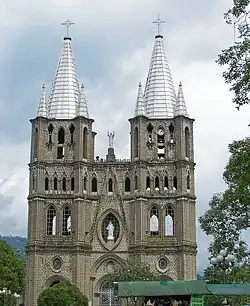 The town's main church is the Basilica of the Immaculate Conception, declared a National Monument of Colombia in 1980. This basilica was built from hand-cut stones from the Tapartó river nearby in a Neo-Gothic style. It was declared a minor basilica in 2003.