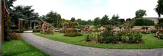 The garden is designed as a pleasure park, with botanical plots containing more than 1,500 plants grouped by families; an orangery (built in 1952) containing Mediterranean plants such as mimosa, oleander, and eucalyptus; and a tropical greenhouse (1,200 m2, built in 1970) which rises to a height of eight meters and houses some 12,000 plants including bananas, coffee, ginger, palm trees, tree ferns, pepper, and frangipani. The garden also contains a rose garden, trees grouped by geographical origin, and a dahlia collection, as well as a large pond and the city's astronomical observatory.