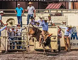 The word Jaripeo (Spanish: [xaɾiˈpeo] ⓘ) refers to a form of rodeo, particularly bull riding practiced in some Latin American countries.[1][2][3][4]