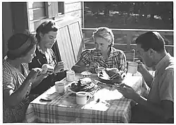 Jarmila Jeřábková, third from left, with two fellow dancers and her husband Ing. Ladislav Mikulík