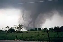In the afternoon hours of May 27, 1997, a large, slow-moving and exceptionally intense F5 tornado caused extreme damage across portions of the Jarrell, Texas area. Known most frequently as the Jarrell tornado,[2] it killed 27 residents in the Double Creek Estates, which at the time was a small subdivision located to the northwest of Jarrell, and inflicted approximately US$40 million in damages (equivalent to $78M in 2024) during its 13-minute, 5.1-mile (8.2 km) track. It occurred as part of a tornado outbreak across central Texas; it was produced by a supercell that had developed from an unstable airmass and favorable meteorological conditions at the time, including very high convective available potential energy (CAPE) values and warm dewpoints.