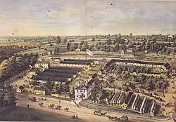 The hospital, which had a capacity of 1,500 beds, was built on relatively high ground, which at the time was on the edge of the city of Baltimore, and, according to one contemporary writer, benefited from "a salubrious air".[1] It was named in memory of surgeon N. S. Jarvis, of the US Army, who died while medical director of the Middle Department.[6]
