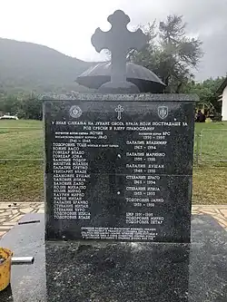 In the first World War, five Serb volunteers from this village participated in the war and were on the Albanian Golgatha and the Solun front were Simo Ubiparip[5], Jovan Ubiparip, Jevto Ubiparip, Mićo Palalić, and Lazo Lazić.[6]