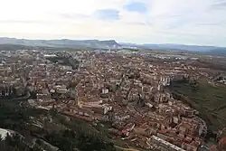 The Ramirez family was initially related to Ariza,[1] an Aragonese town near Calatayud. The great-great-grandfather of Ramírez Sinués, Lorenzo Ramírez, left his native village of Bordalba and settled in Tauste in Western Aragón in the late 18th century.[2] In the mid-19th century his son Iñigo Ramírez Martínez was already the first taxpayer of the town,[3] owned some 170 hectares,[4] a mill and a confectionery manufacture.[5] His son and the grandfather of Ramírez Sinués, Angel Ramírez Carrera (1821-1893), purchased further 630 hectares during so-called desamortización de Madóz in the 1860s.[6] He was active in the Conservative Party, served in the provincial diputation[7] and in 1881-1886 held a seat in the Cortes;[8] his career marked the economic and political climax of the family.[9] His son Javier Ramírez Orúe (1871-1943)[10] in 1897[11] married Manuela Sinués Lambea from the neighboring Gallur (died 1943);[12] she was daughter to local terrateniente family, also enriched during the desamortización.[13]