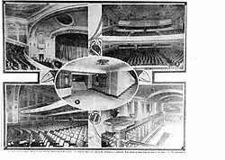 Built of steel and concrete, the auditorium is open, requiring no support posts that might obscure the view. The domed roof had twinkling stars to represent the heavens.