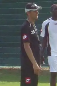 ![]() Garcia (left) during a training session as Angers manager in 2009 | |||