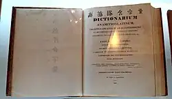 Jean-Louis Taberd first went to Penang and then Calcutta, where, with the help of Lord Auckland and the Asiatic Society he was able to publish his own Latin-Vietnamese dictionary in 1838.[2] He improved upon the previous works of Alexandre de Rhodes and Pigneau de Béhaine, whose 1773 Vietnamese-Latin dictionary he had been handed in manuscript form.[4] He also published Pigneau's dictionary in 1838 under the name Dictionarium Anamitico-Latinum.