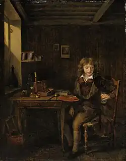 He was exempt from conscription, but served in the garde bourgeoise; a civil organization.[2] While on a leave, arranged by a friend who was a doctor, his entire unit was killed. He chose not to return to service and was forced to flee. During the Siege of Lyon, he helped his mother hide their personal belongings, then went into hiding.[3] He was found and denounced, but fled again, finding refuge in a friend's aviary. He would later say that he created some of his best paintings there, and he was able to send some of them to the Salon in 1796.[2] It eventually became safe to return to Lyon and he lived in an apartment provided by Jean-Jacques de Boissieu. His contributions to the Salon of 1800 were praised by Jacques-Louis David.