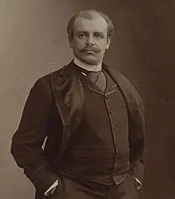Reszke displayed limitations as a baritone and his voice had matured so that the "high notes became rounder and easier".[8] He withdrew from the stage to allow for a further period of study, this time in Paris under Giovanni Sbriglia. His voice gained remarkably in the freedom of its upper register under Sbriglia.[5][7] Reszke traveled with his sister Josephine, a soprano, and his younger brother Édouard as they performed in Western Europe,[3][6][8] during which he took of note what performer's skills he wished to emulate and what traits he wished to avoid.[10]