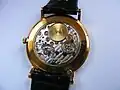 The calibre 1200, with its automatic version the Calibre 2000, were first presented at the Foire Internationale de l’Horlogerie in Basel in April 1976.[10] This mechanical, handwound movement has a diameter of 20.4 mm, and a thickness of 1.2 mm. There is an automatic version which is 2.08 mm thick). It holds 14 ball-bearings. Each one uses 0.20 mm balls. These ball-bearings are inserted in a platine which is 1.2 mm thin. Its frequency is 21,600 Alt/H, and its power reserve is 35 hours. It has 11 jewels. The calibre 1200 (and its automatic version 2000) were built from 1976 to 1979 in the factory that the company Bouchet-Lassale SA had built on 30, rue des Voisins in Geneva, Switzerland. The gold cases came from the « Ateliers réunis », a company also located in Geneva.