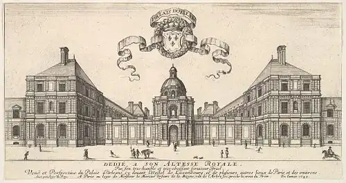 Perspective view of the street facade of Salomon de Brosse's Palais du Luxembourg in 1649, as engraved by Marot in collaboration with Israël Silvestre and Stefano della Bella