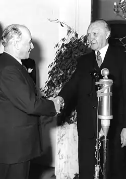 For three decades, Jean Monnet and Charles de Gaulle had a multifaceted relationship, at some times cooperative and at other times distrustful, from a first encounter in London during the Battle of France in mid-June 1940 until De Gaulle's death in November 1970. Monnet and De Gaulle have been referred to together as "probably the two most outstanding Frenchmen of the 20th century".[4][a]