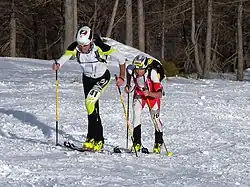 ![]() Pellissier (right) during a race of ski mountaineering | |