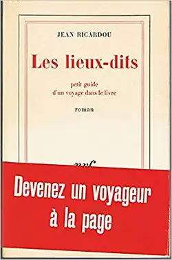 - Novel: Les lieux-dits, petit guide d'un voyage dans le livre (Gallimard, Le Chemin, 1969; UGE, 10/18, 1972); L'Intégrale Jean Ricardou tome 4 (1969-1970),[32] Les Impressions nouvelles, Bruxelles, 2018.[33]