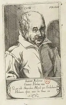 ![]() Jean Robin in the book Le jardin du roy très chrestien Henry IV (1608) | |