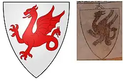 - ^ His arms are shown on the frescs of the Chateau de Ravel in France. The armorials Wijnbergen and Le Breton also show the real tinctures of the blason of Jean de Corbeil: Argent a dragon gueules. The arms with or a dragon sinople are imaginary.
