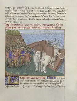 Four of these manuscripts (Arsenal 2693, Fr. 1234, Fr. 1235, Add. 12028) contain aucuns notables extraitz du livre de Vegece, that is, translated extracts from the first three books of Vegetius's De re militari.[5] The evidence of vocabulary suggests that they may have been translated by Jean de Rovroy.[5][6]