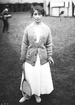 In July 1913 she won the singles events at the tournaments of Chantilly and Compiègne. At Chantilly she defeated 14 year old-Suzanne Lenglen in the semifinal and Kate Gillou-Fenwick in the final.[4] At Compiègne later that month she had a walk-over in the final against Lenglen.[5] In October 1913 she won the singles title at the Paris Covered Court Championships, played at the Sporting Club de Paris, after a three-set victory in the final against Broquedis.[6]