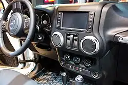 The Unlimited offers more options and equipment than any previous Wrangler model, including standard electronic stability program and optional seat-mounted side airbags, remote keyless entry, navigation system, and Sirius Satellite Radio.[14] The navigation and satellite systems are a part of the MyGig Entertainment system that also has a hard drive allowing for the storage of MP3 music files and pictures.[15]