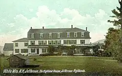 During the early 1900s, Jefferson was a popular summer resort, boasting one of the largest "grand hotels" in the White Mountains—the Waumbek, with accommodations for nearly 300 guests. The hotel had its own rail branch, to deliver guests directly to the hotel from Boston and New York without changing trains. It was destroyed by fire on May 9, 1928.