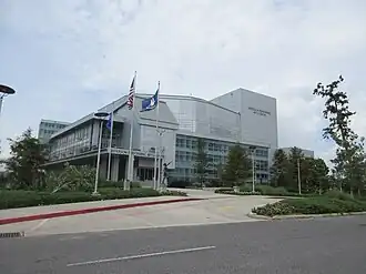 The $54.5 million performing arts center features an acoustically designed interior, a 51-ft. proscenium arch stage with a mechanical orchestra lift, a theatrical fly rigging system, four star-dressing rooms and six ensemble-dressing rooms.[2][3] The theater inside the arts center is named after former Louisiana State Senator Ken Hollis, who helped secure funding for the theater.[4][5]