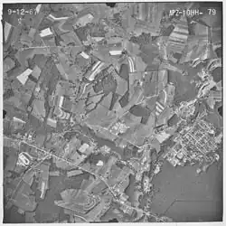 Some of the first settlers were Robert & Rhoda Smiley in the 1780s.[12] Jenner Crossroads, the township's first substantial European settlement, grew near a grist mill and tavern stop established about 1800 along the Pennsylvania Road.[13] Samuel Steel built a sawmill at Jenner Crossroads in 1817; John Shopwood opened a hotel in 1825, and Samuel Elder opened the first store in 1836.[14] Other early industry in the township included a sawmill on Quemahoning Creek built about 1813 by Moses Fream and a small woolen mill, built in 1817 by William Dalley, enlarged by Owen and William Morgan later into a small settlement known as Morgantown.[15] A Lutheran church was built in the township in 1814, a Methodist Episcopal church in 1827, a Reformed church in 1841, and a United Brethren church in 1849.[12]