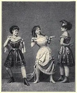 THE WORRELL SISTERS: Jennie was one of three notable sisters who came to fame in the 1800s. Starting as childhood stars, the sisters, Jennie, Sophie, and Irene grew to critical acclaim later in life by being the premier burlesque performers of the time. The earliest of the burlesque shows put on by the Sisters and other artists of the time had a sort of set list that the artists followed with precision. This set list included, “an opening with songs, then acrobats and even magicians, and finally a burlesque done in the English or Victorian Style” (Hughes 26). Whether it was due to their father being a clown, or having to be stuck with their two siblings their entire life, these talented sisters were proficient entertainers. Their shows lasted about an hour and varied in the way they were structured. Before the Worrell Sisters were completely on the scene, the structure of a burlesque show was thus: music, then acrobats, then a small parody skit. Once the girls were in their prime however, the shows morphed into more skits and even sometimes a full-blown parody of an entire play or musical. This would include keeping the basic character archetype, and sometimes even poking fun at it, and keeping music but changing lyrics to songs in the score. The shows were hilarious and were even sometimes more popular than the shows they were making fun of. They mocked the musical conventions and the theatrical styles that the shows were originally done in. In fact, the word "burlesque" originated from the Italian burla, which meant mockery. Because of their successes with multiple audiences, they rose to such acclaim that in later years they were able to purchase their theater right in New York City. Their theater was called the Worrell Sisters’ New York City Theatre and it hosted many burlesque shows of the time that the sisters sometimes acted in themselves. They bought the theatre in 1866. Their theatre was home to not only famous burlesque and parody shows but also melodramas such as Under the Gaslight which required a lot of dramatic and realistic scenery. To keep up with the times, the Sisters tried to keep their theater as up to date as possible. After their fame was over, the youngest and most famous sister Jennie became destitute . Her sisters separated themselves from her because of her degenerate lifestyle and their theater was sold later becoming The Globe theatre in 1870 and the New Theatre Comique in 1881. The building became the Broadway Athletic Club and was eventually demolished in 1884, however no one could contest its notoriety thanks to the Worrell trio (Playbill).