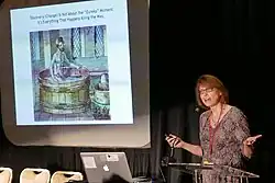 She thereafter worked as a freelance writer contributing to a physics outreach dialogue with articles in a variety of publications such as Physics World,[10] Discover magazine,[11] New Scientist,[12] Physics Today,[13] The Wall Street Journal.[14] and Quanta Magazine[15] Ouellette has given interviews to NPR's Science Friday and SETI's Seth Shostak, and appeared in panel discussions at The Amaz!ng Meeting,[16] Dragon Con,[17] Center for Inquiry, and the National Association of Science Writers.[18] She appeared on NOVA in 2008 and on The Late Late Show with Craig Ferguson in 2011 to discuss her book The Calculus Diaries and winning a coveted Golden Mouth Organ.[19]