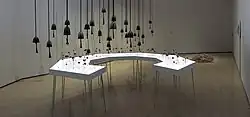 Kendler's work often takes the form of large-scale, often interactive, outdoor works or community co-created projects in 'unconventional' locations such as a Costa Rican tropical forest, an Arizona desert, a series of Chicago community gardens or in the fern room at the Lincoln Park Conservatory.[18] She also presents exhibitions, projects and workshops at cultural venues including the Albright-Knox Art Gallery,[19] the Pulitzer Arts Foundation,[20] the Museum of Contemporary Art, Chicago,[21] the Indianapolis Museum of Contemporary Art,[22] the DePaul Art Museum,[23] the Kochi-Muziris Biennale,[24] the Chicago Biennial at the Elmhurst Art Museum,[25] the Terrain Biennial[26] Exit Art, the Arts Club of Chicago and at Storm King Art Center for their 2018 exhibition Indicators: Artists on Climate Change.[27]