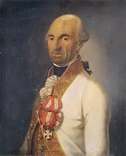 In 1730, at the age of 14, he entered as a cadet the regiment of Grenzers, an elite regiment of Hussars. In 1753, he reached the rank of Oberstlieutenant. In 1758, he was an Oberst, in charge of the 8th regiment of Grenz, with several military campaign successes under his belt. He had already received the title of Freiherrnstand-Baron in 1760. In 1762, he was awarded the Maria-Theresa order. In 1770, he was promoted to general-major and finally, in 1773, to Feldmarschall-Lieutenant (field marshal-lieutenant). He died in Vienna.[1]