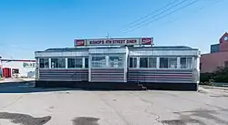 - Bishop's 4th Street Diner, in Newport, Rhode Island, was in continuous use in Newport from 1967 to 2022.[15] Previously located on Route 6 in Swansea, Massachusetts as "The Princeton Diner."[4] It was moved to Admiral Kalbfus Road in Newport in 1967 as "The Galley Diner," then "The 4th Street Diner" (a tongue-in-cheek name, since no 4th Street exists in Newport).[4] In 1998, renamed "Bishop's 4th Street Diner" after a new owner.[4] The diner closed in 2022 to make way for a Seasons Market and gas station.[4][16] After its closure, the diner was sold in October 2022 and moved to New Hampshire, where new owners plan to eventually reopen it as a restaurant.[17]